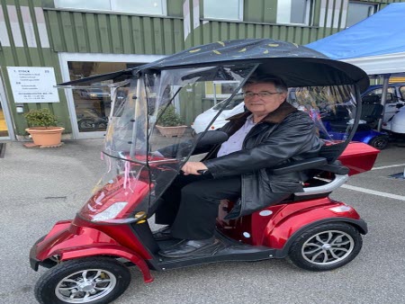 Das ideale Regen -und Sonnendach mit Windschutzscheibe und Dach. Leicht zu montieren über Seitenspiegel und Rückenlehne.